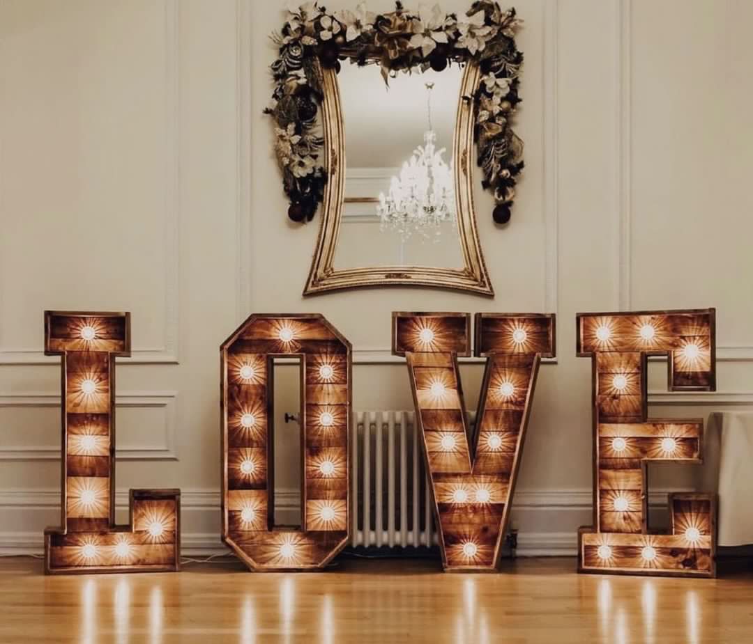 LED letters near the dance floor at your wedding can create a magical and enchanting atmosphere for you and your guests to enjoy. The glow of these letters provides a beautiful backdrop that complements the romantic ambiance of the occasion. You can have the classic MR & MRS or go all out with your new married name.